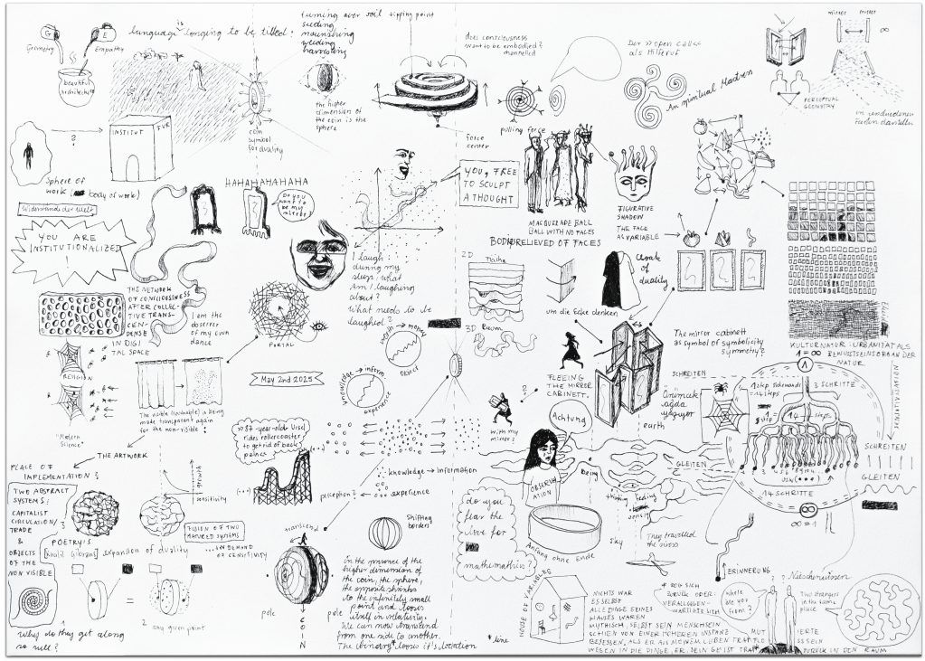 Manifesto 2025 is an ongoing, monthly series of drawings that follow inner paths and associative spaces. Each drawing, referred to as a ‘Legend,’ acts as a map or a key, capturing a fragment of the entire yearly cycle. Over twelve months, the series forms a complete manifesto of twelve sheets that combines cartographic precision with associative openness.