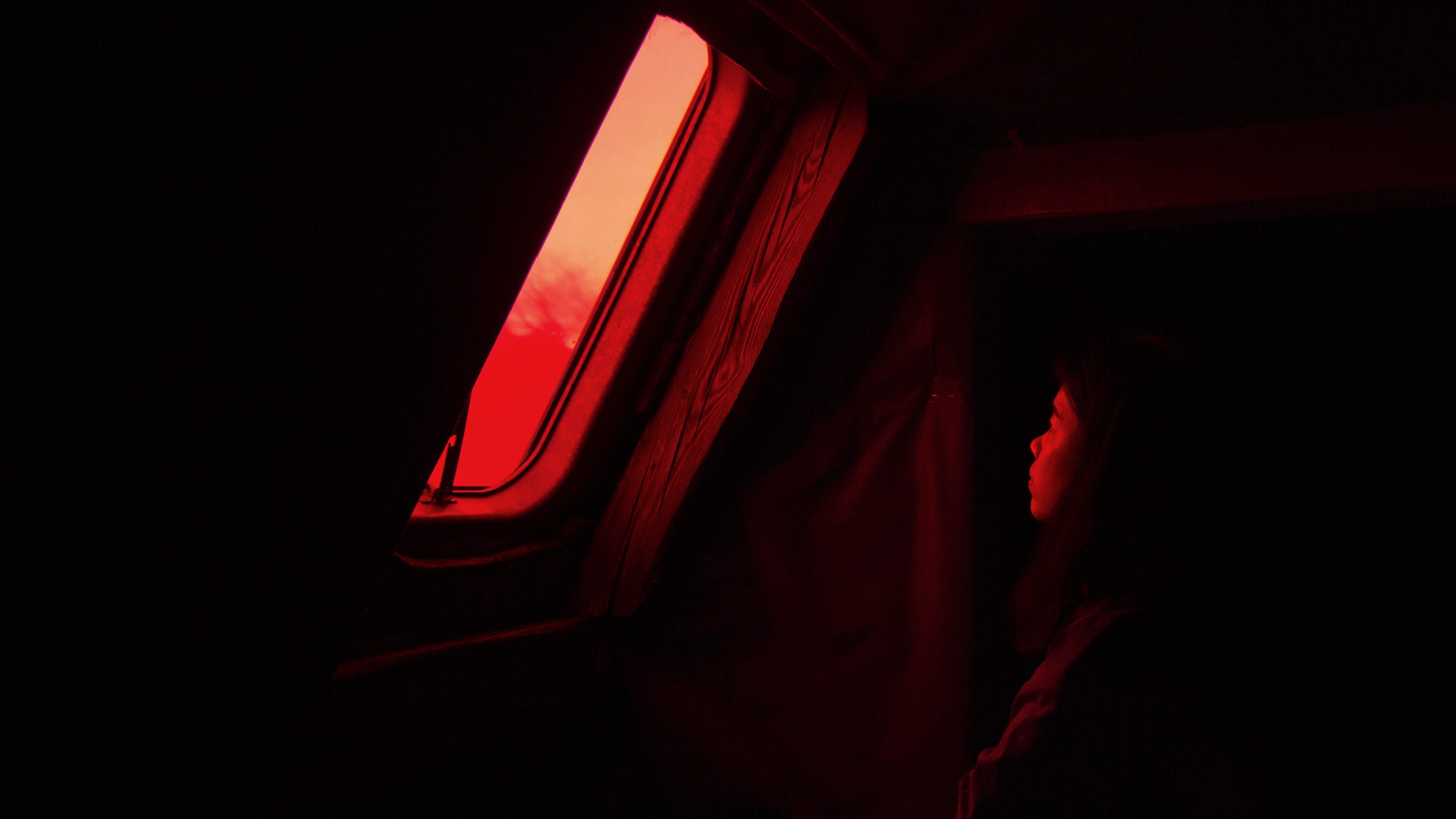 bird calls intertwined with gentle splashes of water. The space was filled with a deep red light filtering