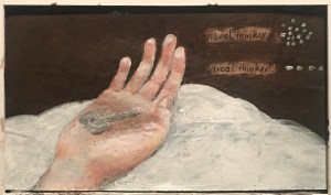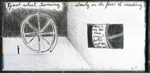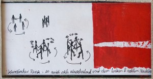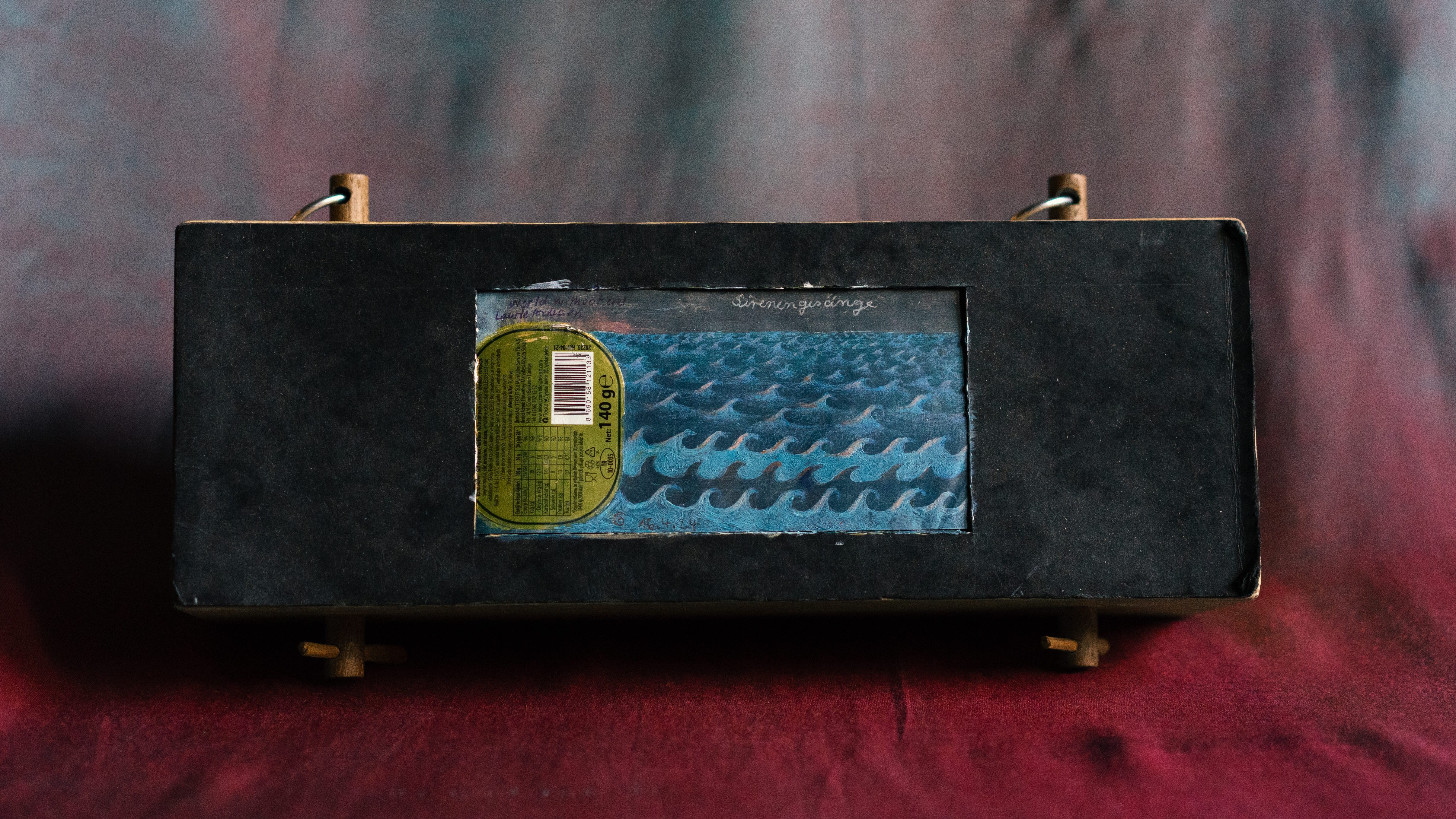 At the beginning of a journey – one of unknown path and end, I developed a special kind of diary: a wooden spool with a 40-meter-long paper ribbon, a carrying strap and a drawer.